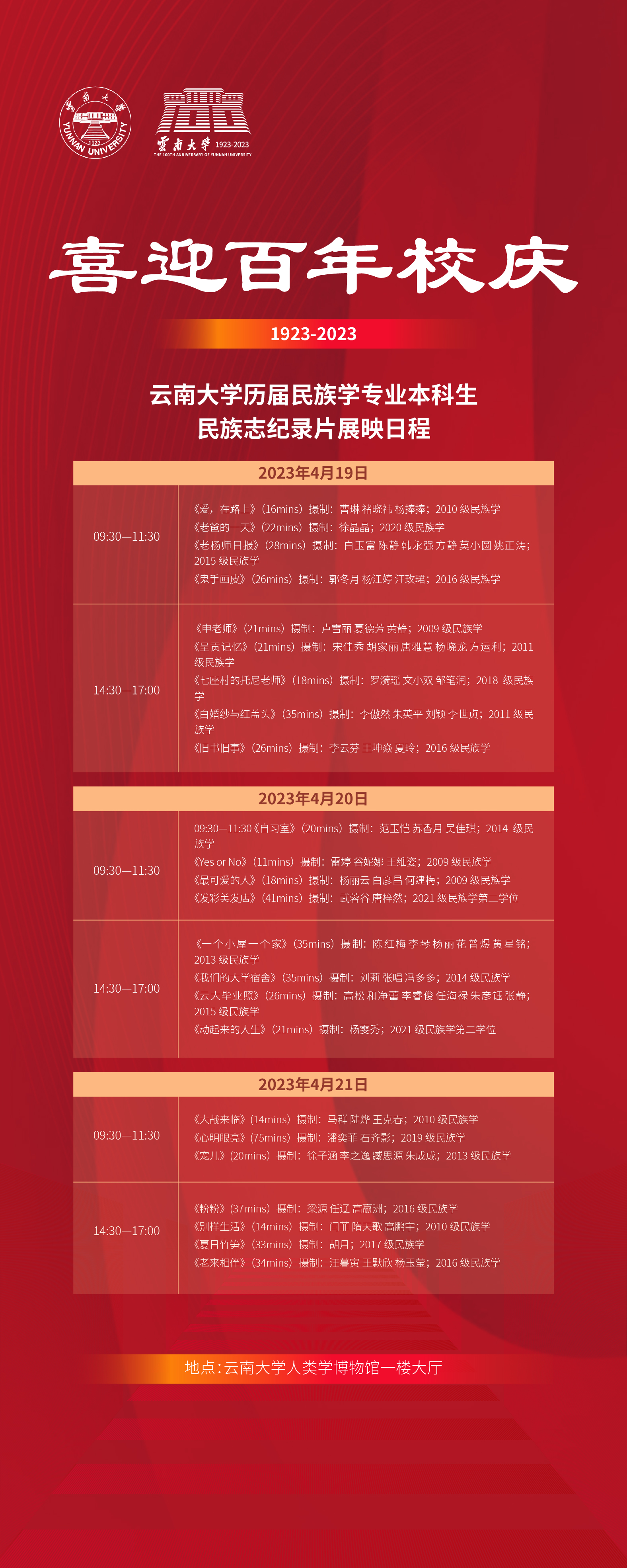 在“云南大学历届民族学专业本科生民族志纪录片展映”中,共展出25部由云南大学历届民族学专业本科生所拍摄的民族志纪录片,展现了在民族学学科发展过程中,影视人类学在其中所起到的重要作用。